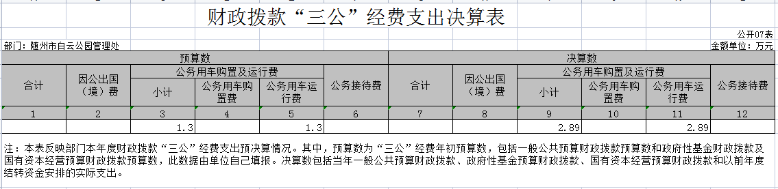 七、財(cái)政撥款“三公”經(jīng)費(fèi)支出決算表(公開(kāi)表07)