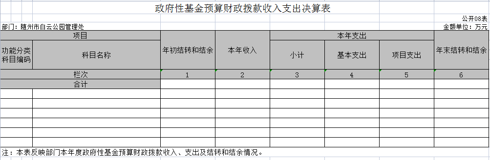 八、政府性基金預(yù)算財(cái)政撥款收入支出決算表(公開(kāi)表08)