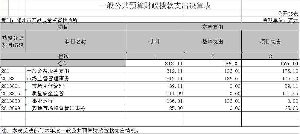 五、一般公共預算財政撥款支出決算表(公開表05表)