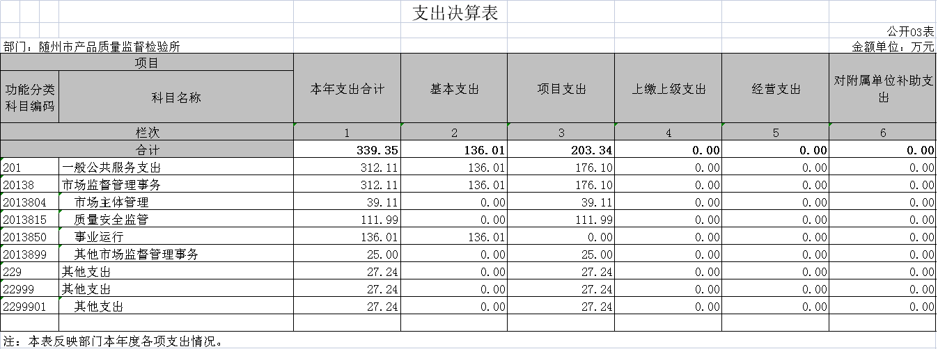第三部分 隨州市產品質量監督檢驗所2020年部門決算表