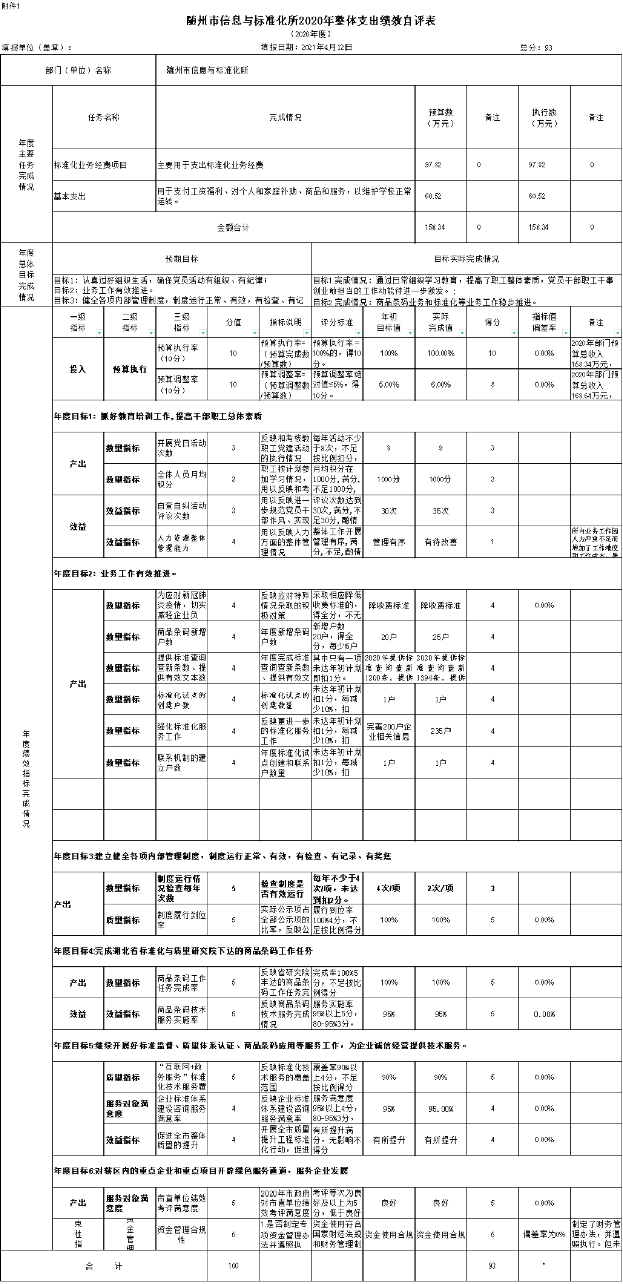 附件:2020年度隨州市信息與標準化所整體績效自評