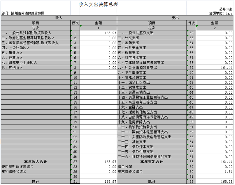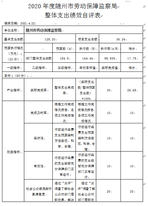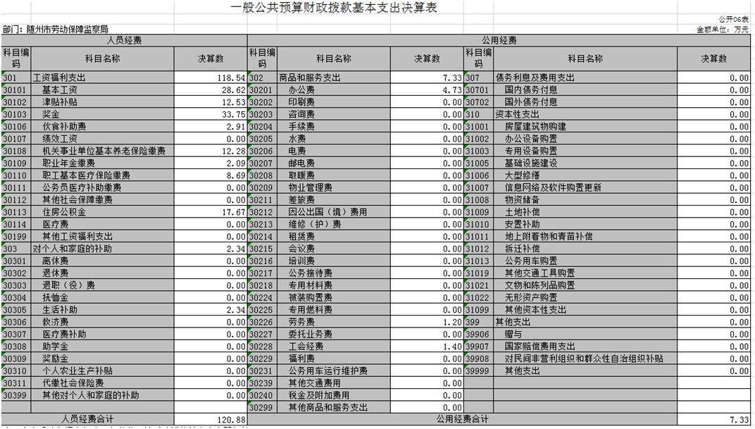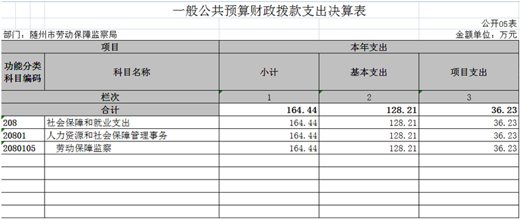 隨州市勞動保障監(jiān)察局2020年部門決算