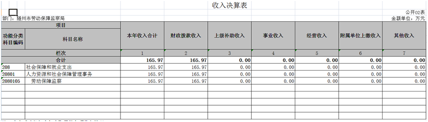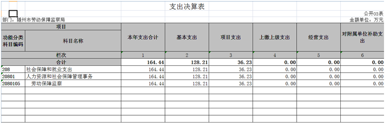 第三部分 隨州市勞動保障監(jiān)察局2020年部門決算表