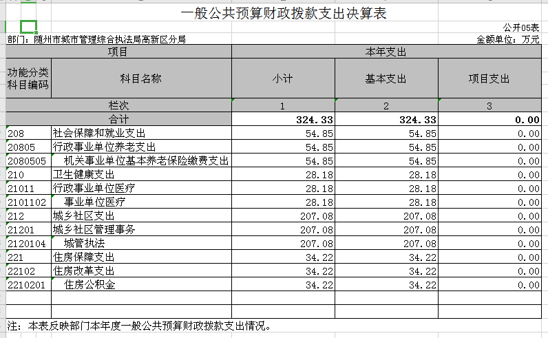 五、一般公共預算財政撥款支出決算表(公開表05表)