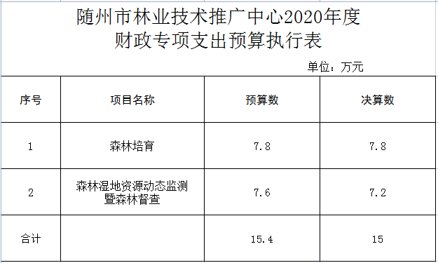 隨州市林業(yè)技術(shù)推廣中心2020年度決算公開說明