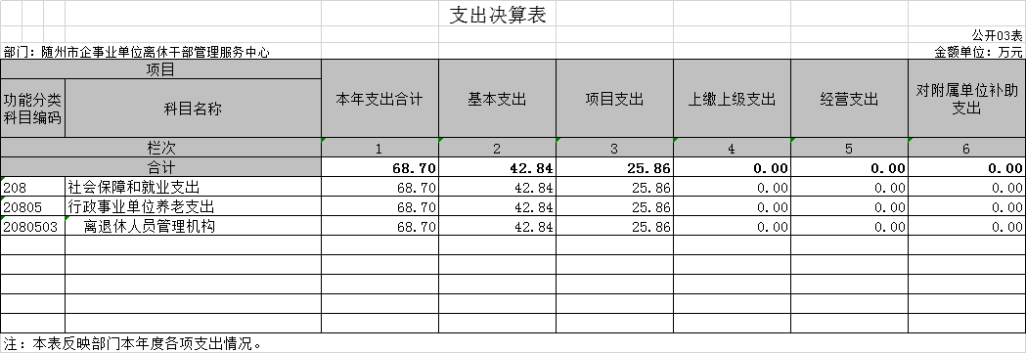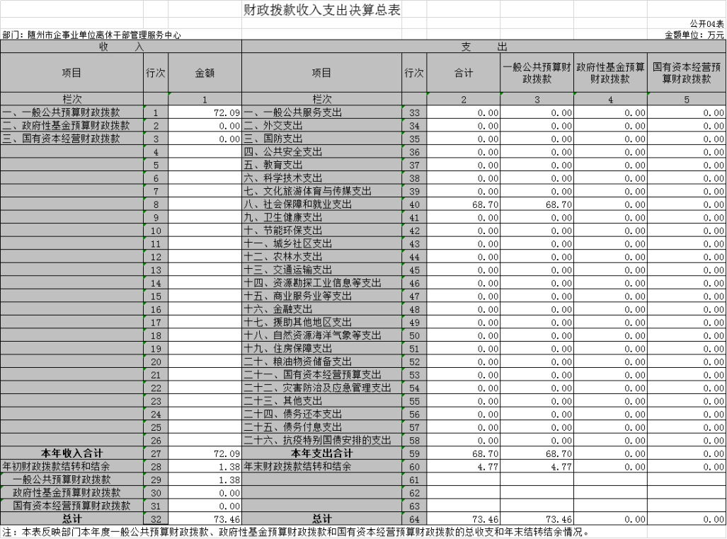 ?三、隨州市企事業單位離休干部管理服務中心2020年部門決算表