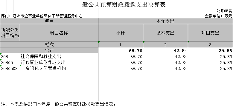 項目名稱 | 隨州市企事業單位離休干部管理服務中心專項經費 | |||||||||