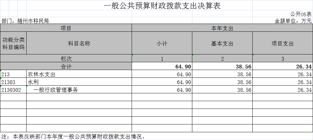 隨州市移民服務中心(原隨州市移民局)2020年部門決算公開