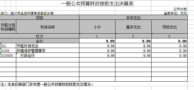 隨州市生態環境局曾都區分局2020年部門決算