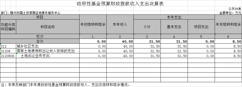 ? ? ???? 第三部分?隨州市國土資源局征地事務(wù)服務(wù)中心2020年部門決算表