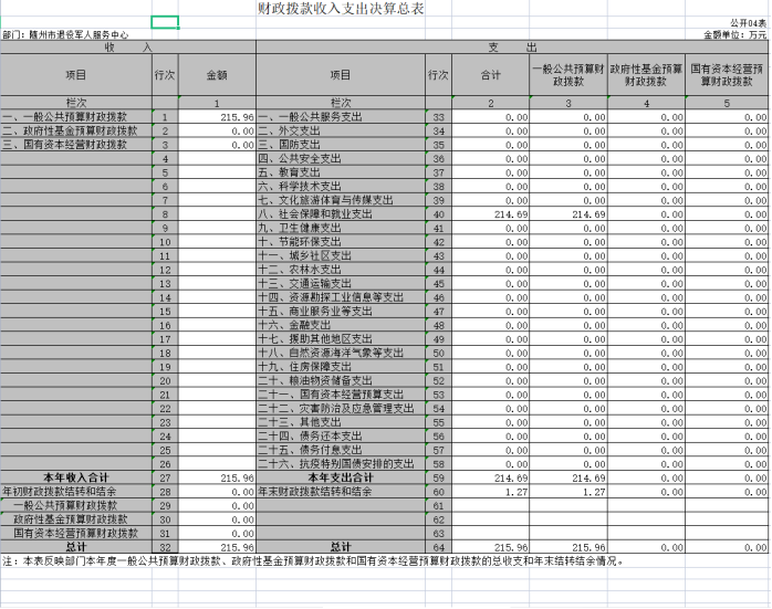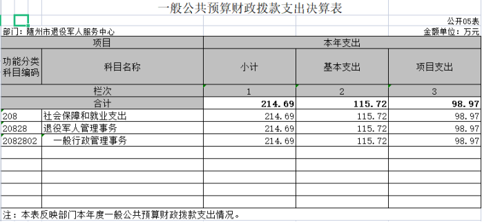第三部分 ?隨州市退役軍人服務中心2020年部門決算表