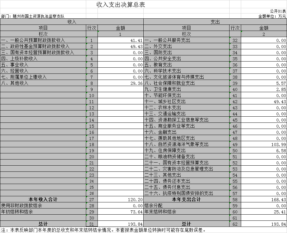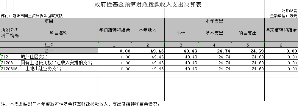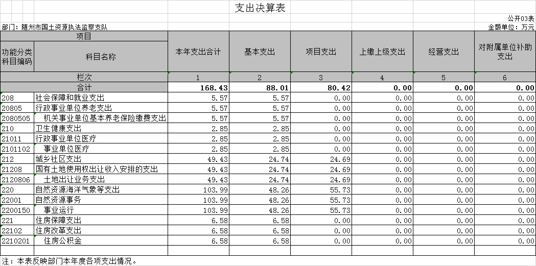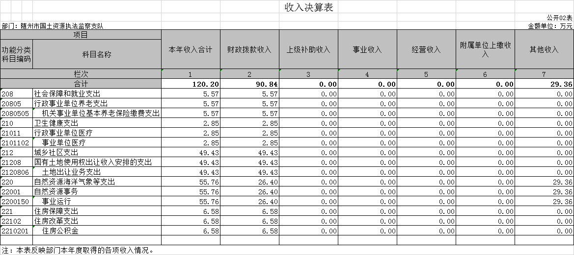 ?????? 第三部分?隨州市國土資源執法監察支隊2020年部門決算表