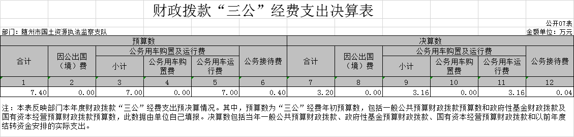 ?本部門2020年度一般公共預算財政撥款“三公”經費支出年初預算數為7.4萬元,決算數為0.3萬元,完成預算的4.05%,決算數較上年的4.02萬元減少92.54%,主要原因是嚴格執行八規定精神導致一般公共預算三公經費支出較少。其中: