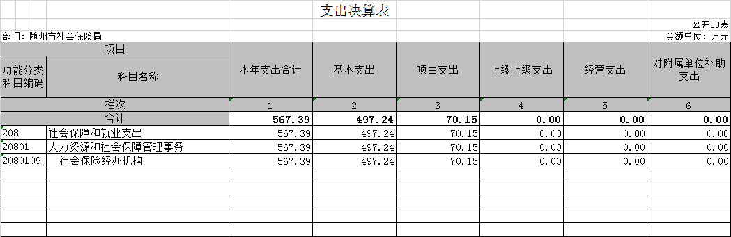 隨州市社會保險局2020年部門決算