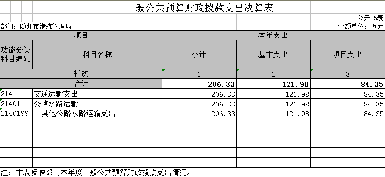 2020年財政專項支出涉及項目1個,項目名稱:水上安全監督管理。該項目資金在年度內全部執行完畢,預算數為40萬元,決算數為40萬元,完成年初預算的100%。