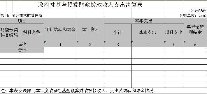 八、政府性基金預算財政撥款收入支出決算表(公開表08表)