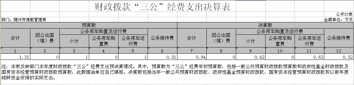 七、財政撥款“三公”經費支出決算表(公開表07表)
