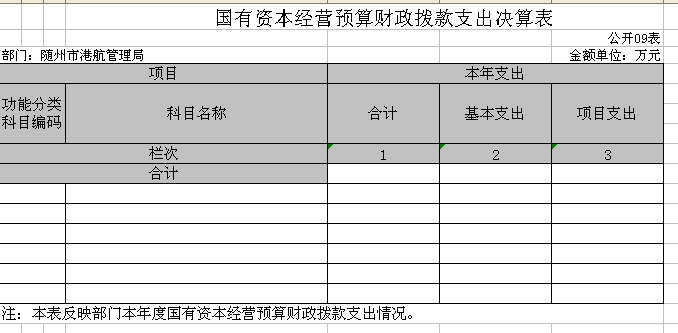 九、國有資本經營預算財政撥款收入支出決算表(公開表09)