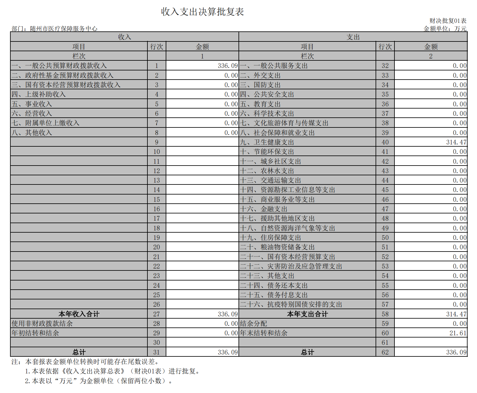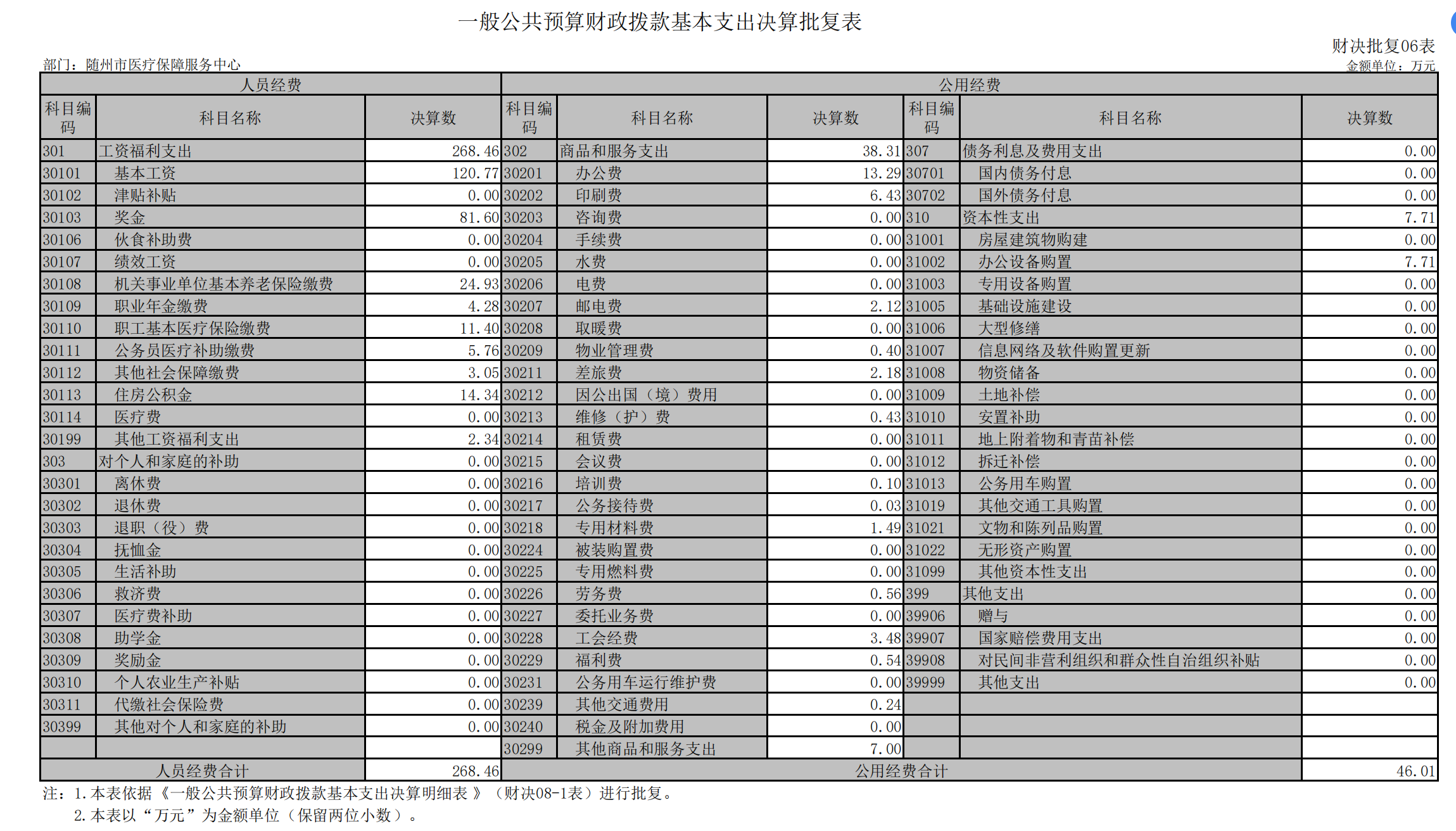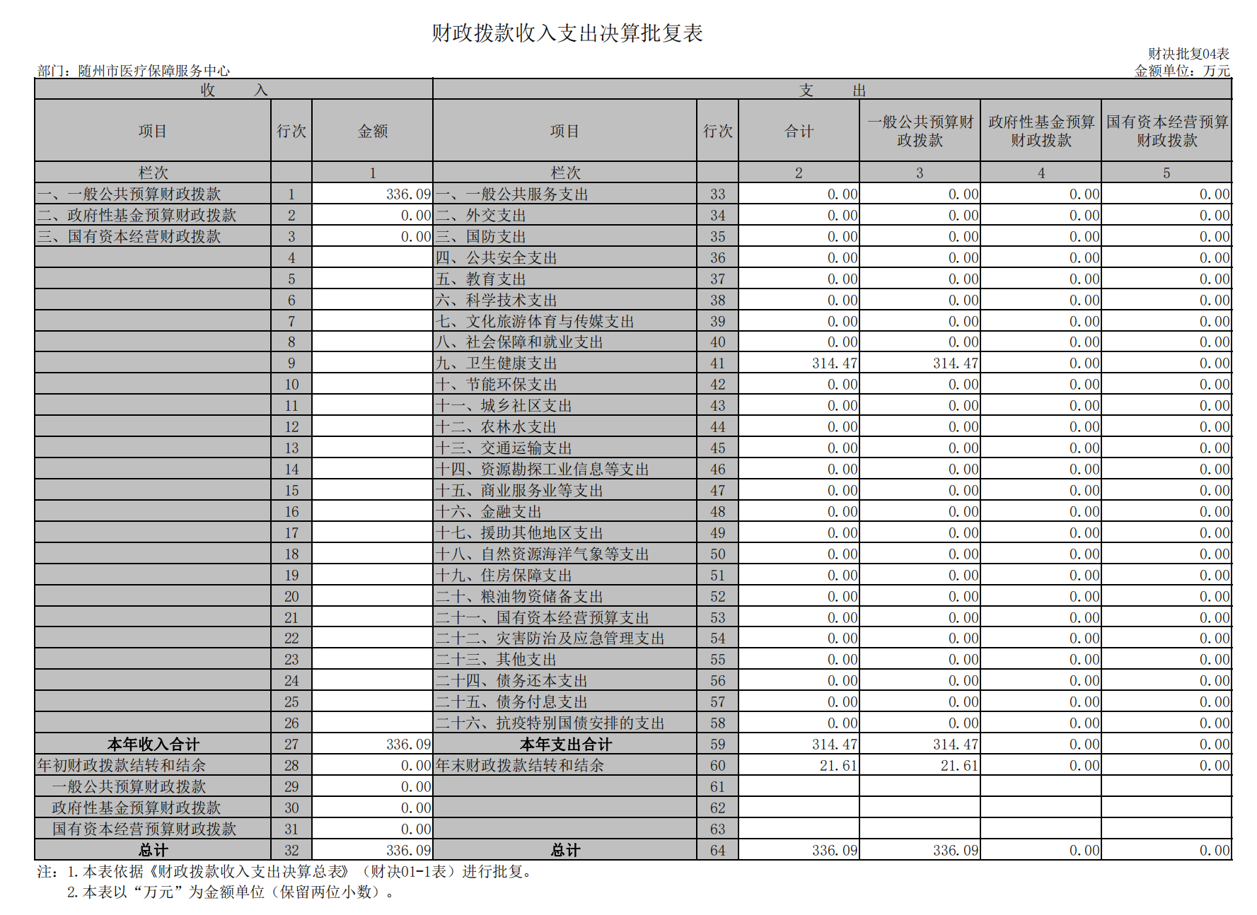 第三部分??隨州市醫療保障服務中心2020年部門決算表