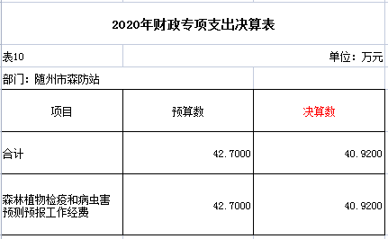 十、隨州市森防站2020年財政專項支出決算表(表10)