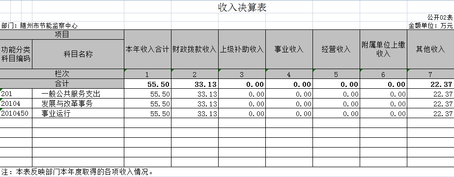 (一)收入總計55.50萬元(上年收入總計54.75萬元,同比增加0.75萬元,同比增加1.37 %)。其中財政撥款收入33.13萬元,為市本級財政當年撥付的資金。