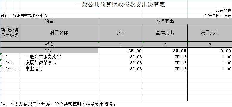 2020年度一般公共決算支出35.08萬元,比年初預算33.13萬元增加1.95萬元,其中:基本支出35.08萬元,比年初預算33.13萬元增加1.95萬元,項目支出0萬元,比年初預算0萬元增加(或減少)0萬元。原因:基本支出較預算增加原因為追加五項獎勵工資 。基本支出比去年減少21.05萬元,項目支出比去年增加0萬元。原因:基本支出較上年減少原因為2019年將上級單位撥款錯做成財政撥款 。