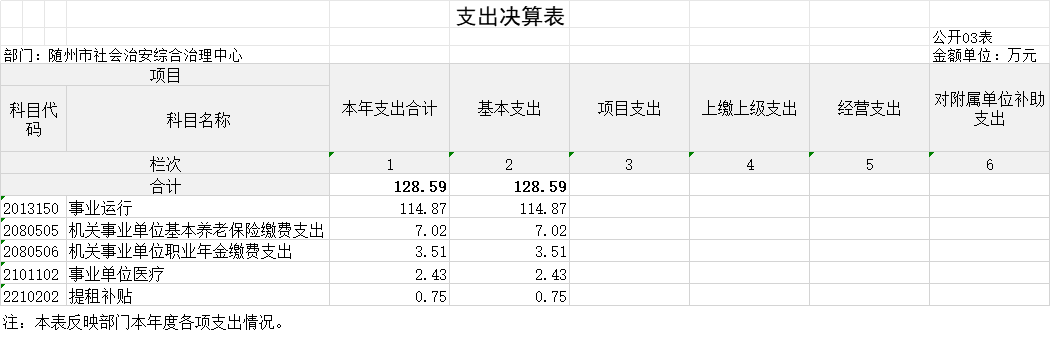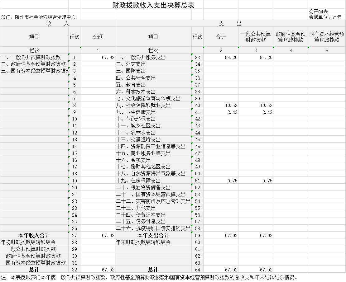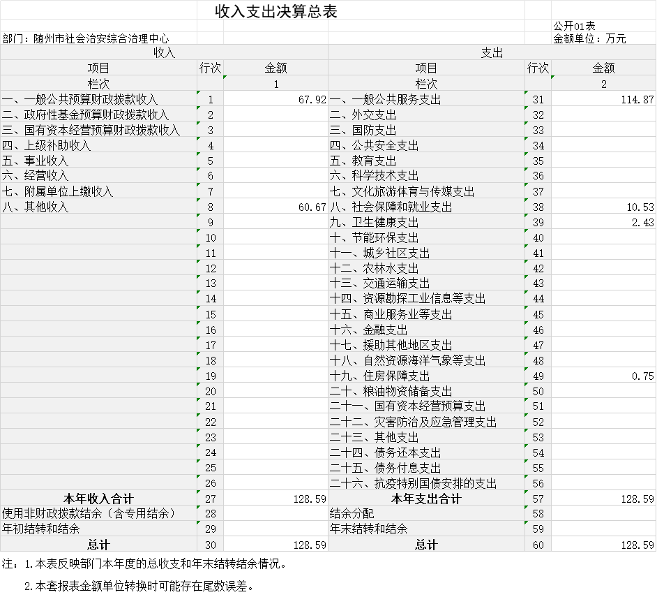 第二部分 隨州市社會治安綜合治理中心2024年度部門決算表