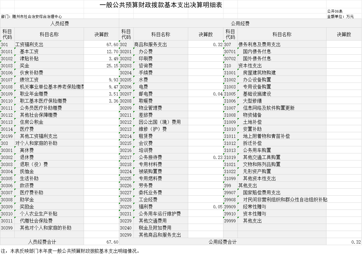 2024年度一般公共預算財政撥款基本支出67.92萬元,其中: