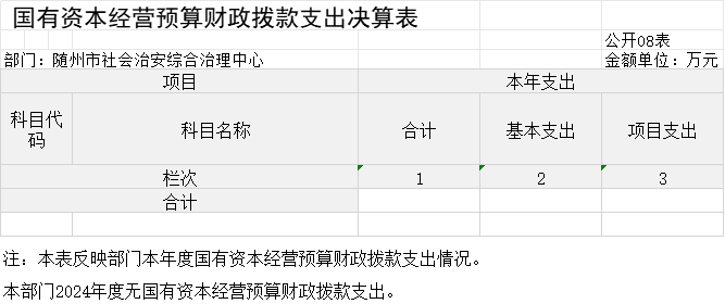 2024年度國有資本經營預算財政撥款本年支出0萬元。具體支出情況為:本單位當年無國有資本經營預算財政撥款支出。