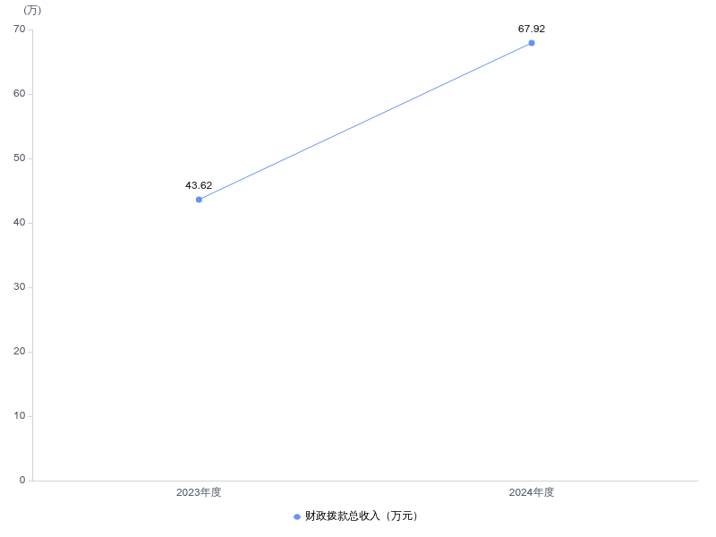 2024年度財政撥款收、支總計均為67.92萬元。與2023年度相比,財政撥款收、支總計各增加24.30萬元,增長55.7%。主要是補發以前年度獎勵工資