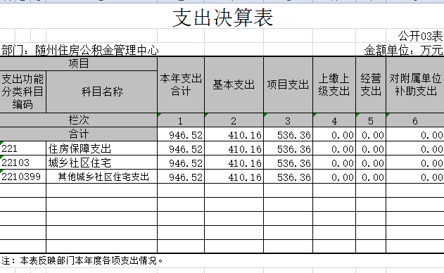 我中心支出全部為住房保障支出,共計946.52萬元,比上年的836.64萬元增加了109.88萬元,增長13.13%。主要原因是購買隨縣辦事處業務用房、裝修中心業務大廳,業務用房建設支出比上年增加129.93萬元,增長53.4%。信息化建設投入比上年增加15.05萬元,增長21.83%