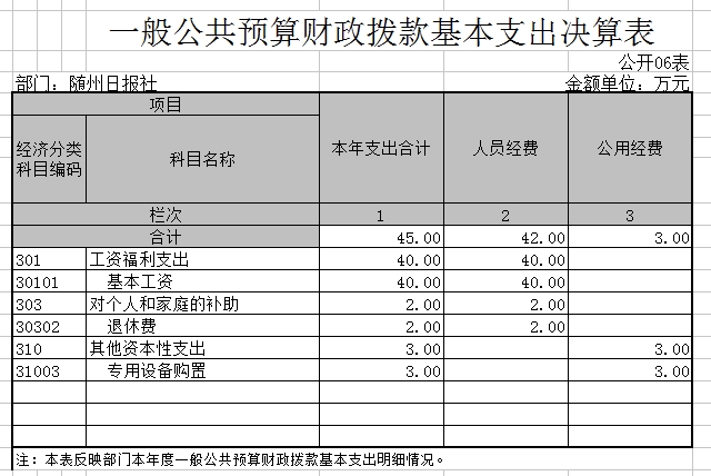 2015年,隨州日報社日常公用經費2101083.03元,比上年度減少999147.32元,降幅32.23%。其中主要有辦公費131715.96元,印刷費500215.68元,水費51749.43元,電費153775.38元,郵電費35294元,差旅費60353.5元,維護費35852元,公務接待費37585元,公務用車運行維護費152235.93元,稅金及附加費用185131.25元,其他商品和服務支出316038.40元。運行經費降低主要原因為單位嚴格執行“八項”規定,嚴控各項經費支出。運行經費來源全部為事業收入,無財政撥款收入。
