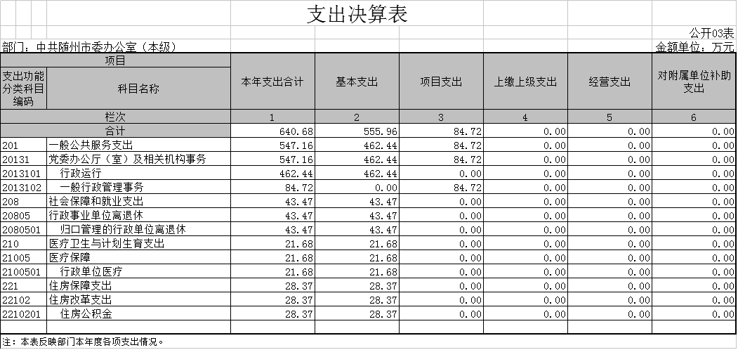 ???2015年市委辦公室收入預(yù)算總額為734.82萬元,均為財(cái)政撥款(補(bǔ)助)收入。支出總額為640.68萬元,其中:基本支出555.96萬元,項(xiàng)目支出84.72萬元。