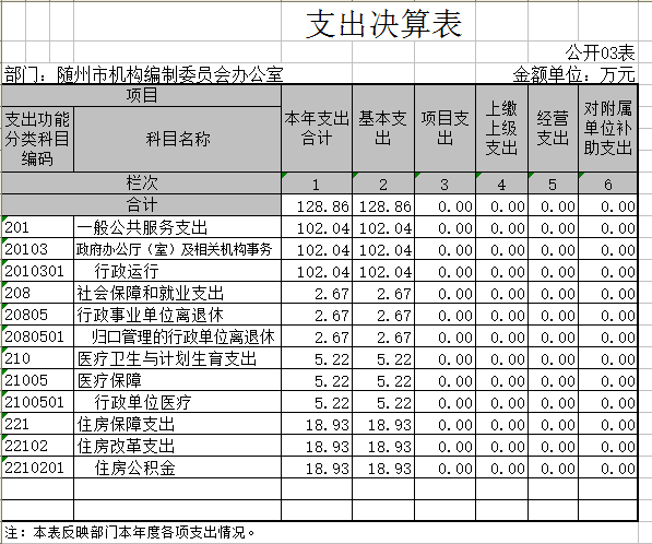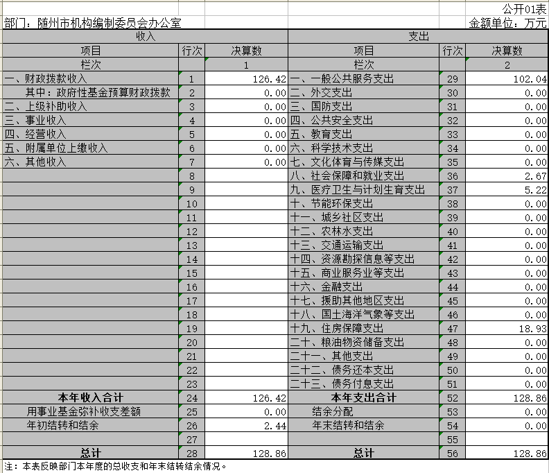 2015年決算收入合計(jì)128.86萬(wàn)元,其中財(cái)政撥款收入 126.42萬(wàn)元,上年結(jié)轉(zhuǎn)和結(jié)余2.44萬(wàn)元。決算支出合計(jì)126.41萬(wàn)元。其中人員經(jīng)費(fèi)支出100.45元,日常公用經(jīng)費(fèi)支出25.96萬(wàn)元,