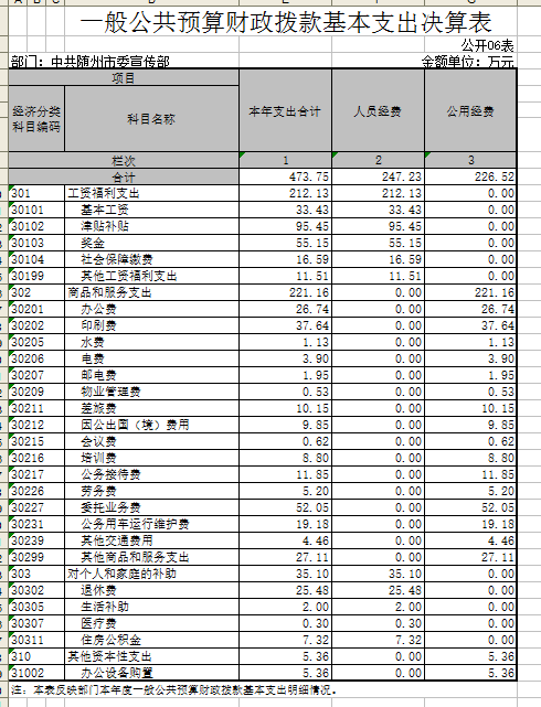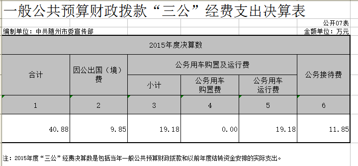 隨州市委宣傳部2015年部門決算