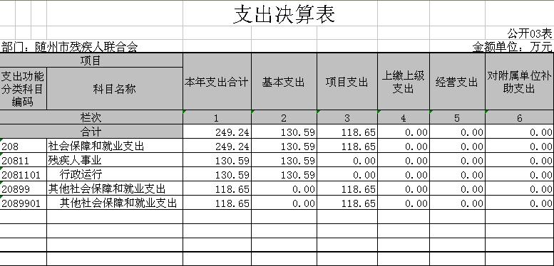 第三部分 隨州市殘疾人聯合會2016年部門決算表