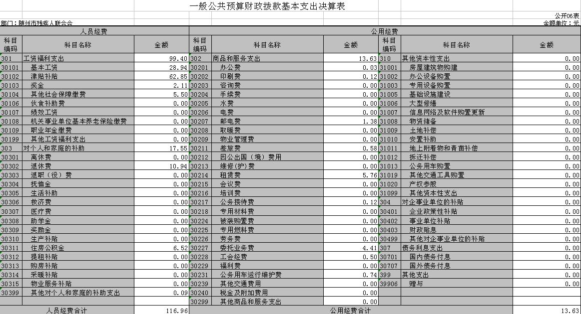 一般公共預算財政撥款基本支出總額130.59萬元,其中:人員經費支出116.96萬元,公用經費支出13.63萬元。