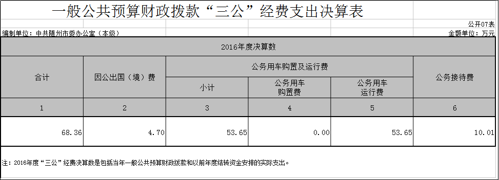 ??2、“三公經(jīng)費”全年總支出為68.36萬元,比上年的108.33萬元降低37%。其中因公出國4.7萬元(組團一個一人次)較上年的5.65萬元減少0.95萬元;公務車運行維護費53.65萬元,比上年的87.8萬元減少34.15萬元;公務接待10.01萬元113批890余人次(不含陪同人員),較上年的14.88萬元減少4.87萬元。減少的原因是市委辦公室認真貫徹落實中央八項規(guī)定精神和省委、省政府、市委、市政府關于厲行節(jié)約的要求,進一步從嚴控制“三公”經(jīng)費開支。本年度未新購公務用車,2016年4月車改核定公務用車數(shù)量為7輛,年底實際為7輛。