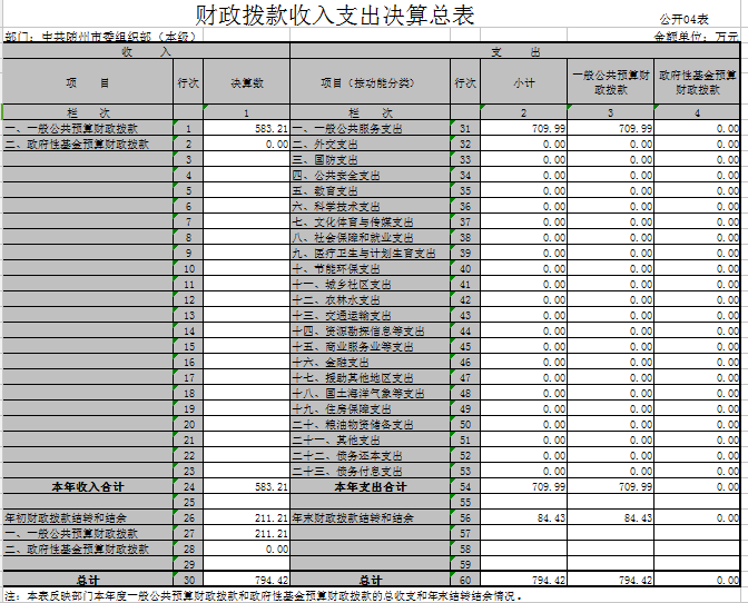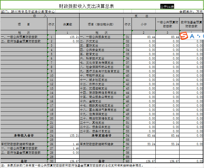 ??一、收入支出決算表