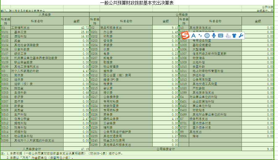 ??六、一般公共預算財政撥款基本支出決算表