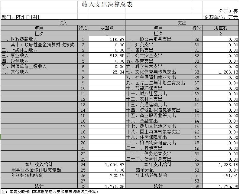 隨州日報社2016年決算公開