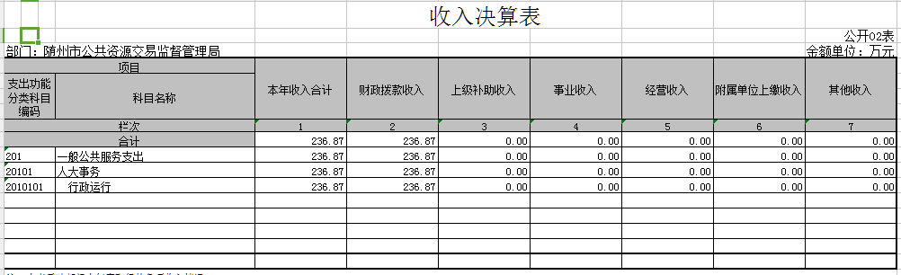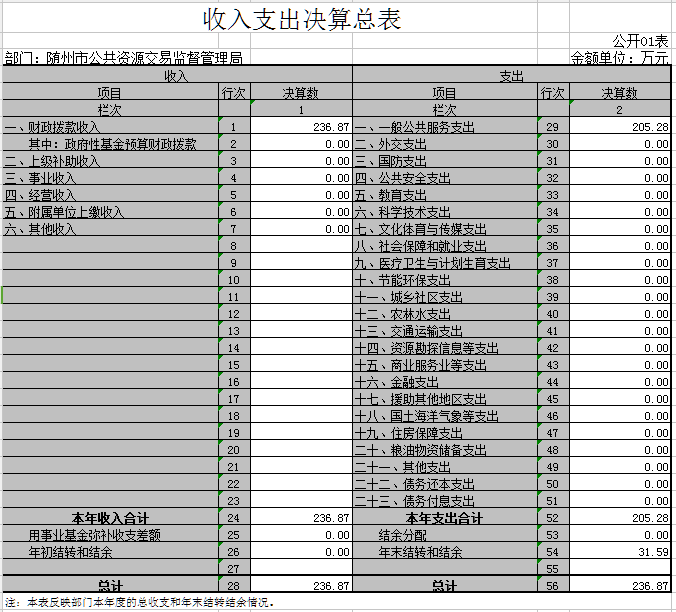 2016年收入決算236.87萬元,上年結(jié)轉(zhuǎn)和結(jié)余0萬元。
