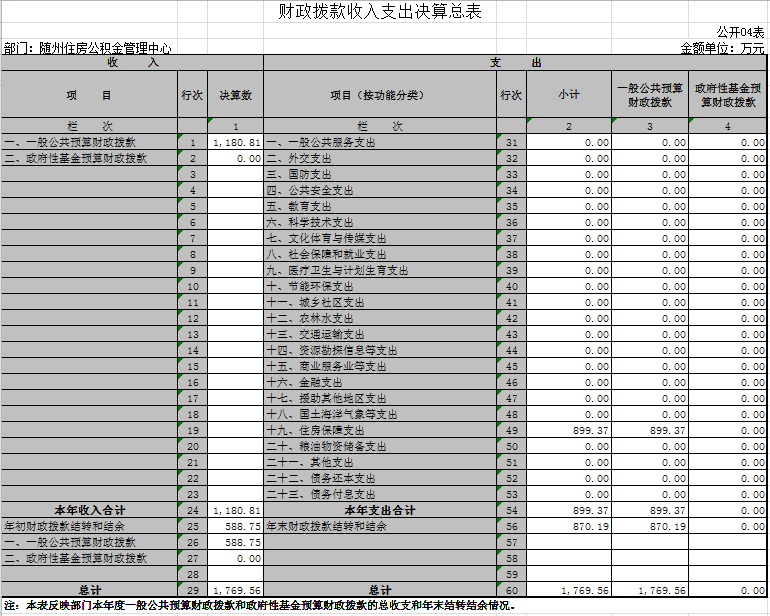 一、財政撥款收入:根據《住房公積金管理條例》規定,中心每年向市非稅收入管理部門上繳從住房公積金增值收益中提取的中心管理費用,財政局以一般公共預算財政撥款的方式撥回中心使用,即市級財政部門安排給單位的預算總收入。