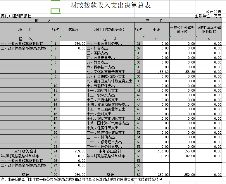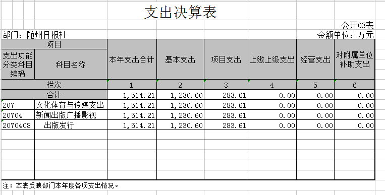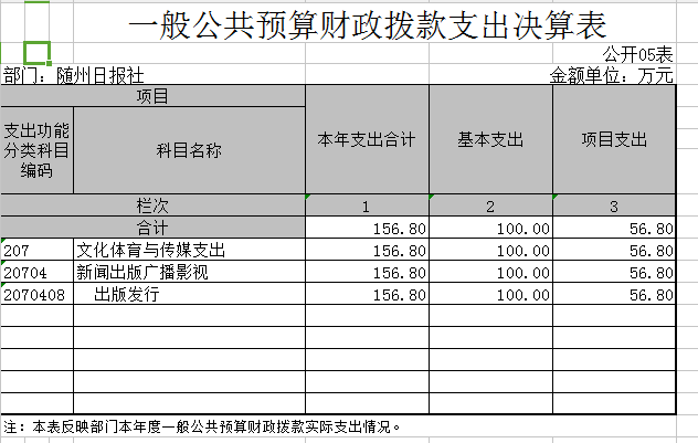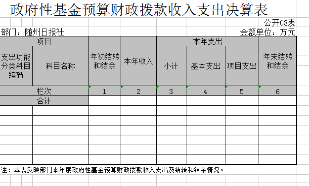 隨州日?qǐng)?bào)社因無政府性基金,所以“政府性基金預(yù)算財(cái)政撥款支出決算表”無數(shù)據(jù)。