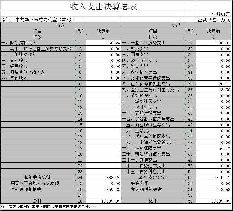 1、收入支出決算總表