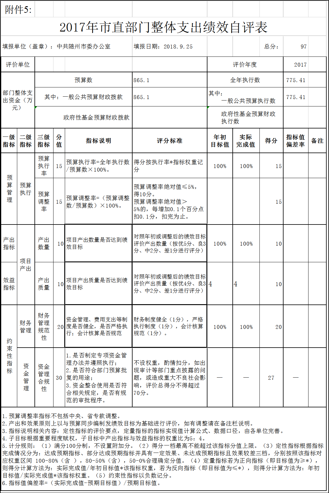 中共隨州市委辦公室2017年度整體支出及專項工作經費績效自評報告
