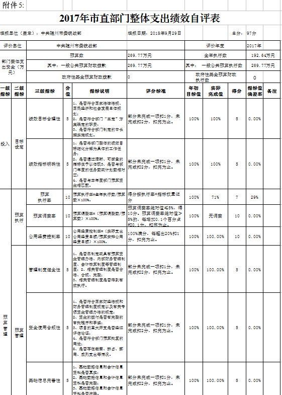 保障了2017年整體績效目標的順利實現。根據部門整體支出績效評價指標體系,我部2017年度評價得分為97分。