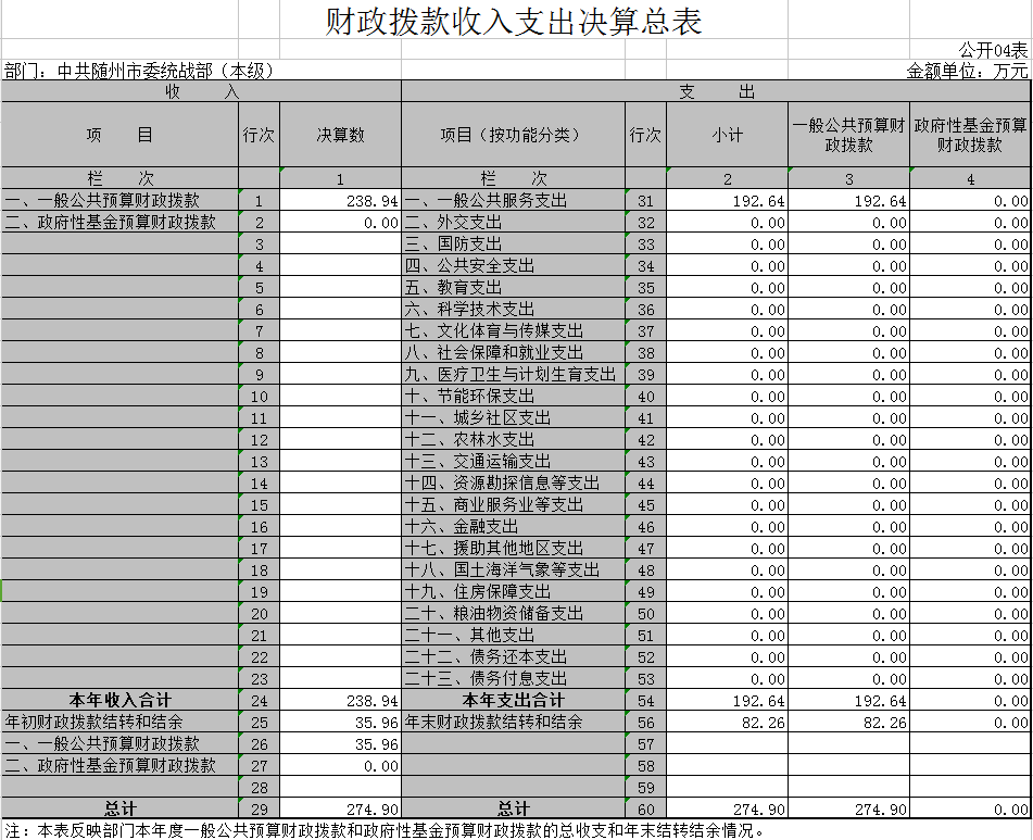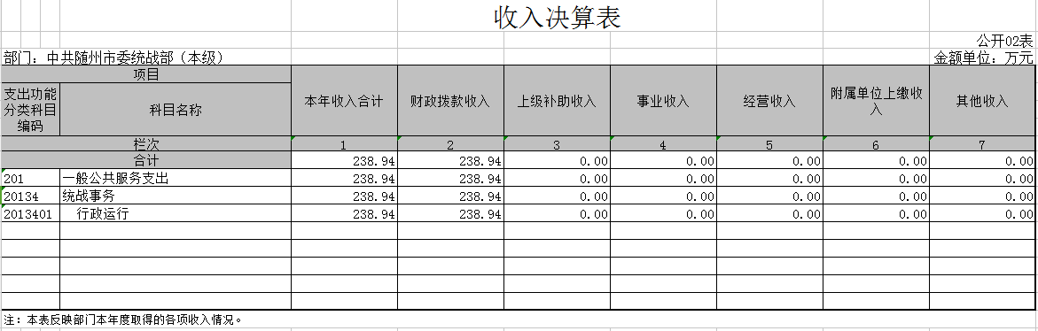 中共隨州市委統一戰線工作部2017年度部門決算公開