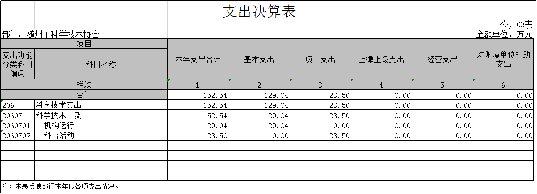 | 部門整體支出資金(萬元) | 預算數 | 182.67 | 全年執行數 | 152.55 | ||||||