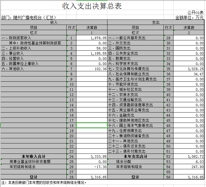隨州廣播電視臺系統匯總2017年度無機關運行經費(因年初部門預算財政未安排機關運行經費支出),和上年同比無增減。
